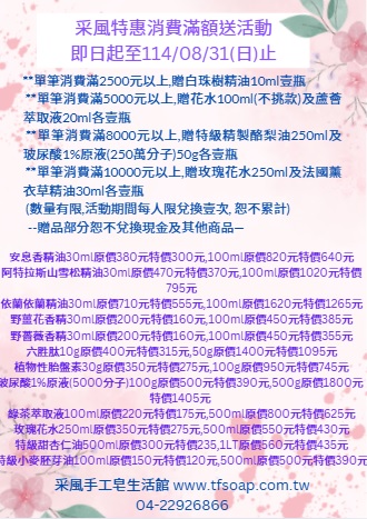 活動: 采風好康報報特惠活動消費滿額送, 即日起至114/08/31(日) ~已截止