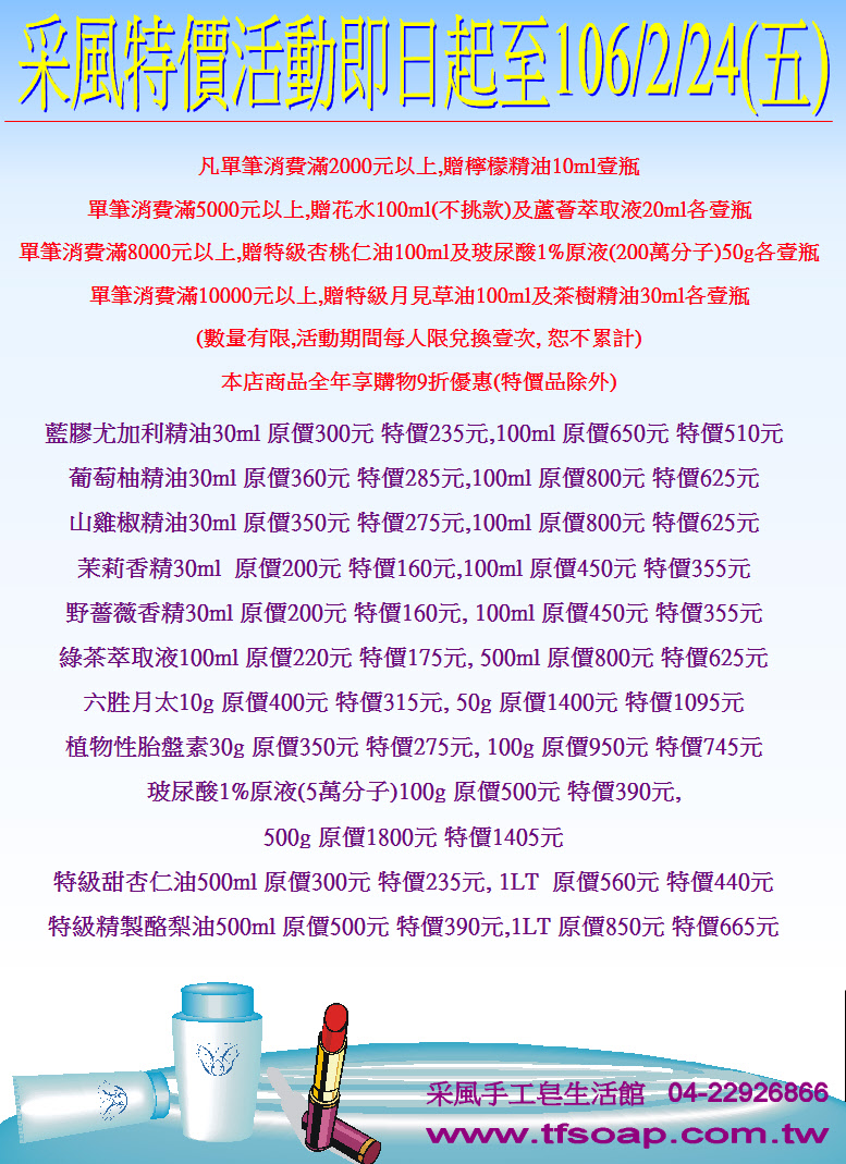 (3)可下載 [ 材料價目表 ] 選購 , 將訂單mail至 tfsoap168@gmail.com